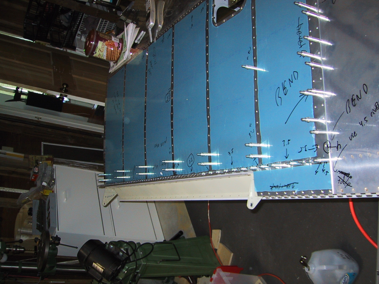 Max and I have started riveting the bottom outboard right skin. Really nice so far.
