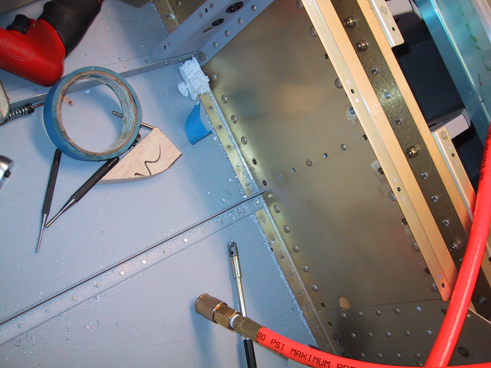 I've replaced the incorrect rivets - notice the countersunk pop rivet.